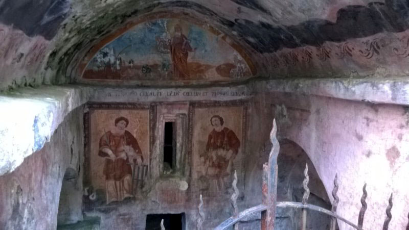 Dal piazzale, poco oltre la cappella di S. Uguccione decorata da un affresco del '400, scendendo la cosiddetta “scala santa” si accede alle antiche cappelle di celebrazione dei monaci: S. Margherita e S. Quirico del XIII e XII secolo in cui sono presenti affreschi fortemente deteriorati dall'umidità.