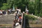 particolare della mappa da: Storia della battaglia di Tornavento Il fragore dei cannoni segna l'inizio della battaglia: l'armata spagnola comandata dal Marchese di Leganès fiancheggiata dalla Cavalleria ispano-napoletana fronteggia l'armata francese del Duca de Créquy a cui si è unito il contingente sabaudo del Duca Amedeo I. E' il 22 giugno 1636 e a Tornavento i contendenti sono giunti alle fasi finali di questa interminabile battaglia combattuta nell'ambito della Guerra dei Trent'anni. Le truppe spagnole difendono Milano dall'attacco delle truppe franco-sabaude che hanno attraversato il Ticino e sono in parte trincerate dietro i fossati vuoti del Panperduto, della Cerca e di alcuni fortilizi realizzati dai soldati francesi. Una folla di uomini e donne si combatte con le picche, lunghe aste di legno munite di punte metalliche per colpire gli avversari a piedi e la cavalleria che avanza. Sui due fronti opposti risuonano i colpi degli archibugi mentre sul campo cadono a terra i primi morti e feriti. Le donne vivandiere ed i frati accorrono per aiutare i colpiti e dare l'ultima benedizione agli agonizzanti. Alla fine dei combattimenti si parla di migliaia di morti e di un intero territorio saccheggiato e devastato. Difficile parlare di vincitori e vinti anche se certo resta il fatto che gli Spagnoli siano riusciti a sbarrare la strada verso Milano ai Francesi. La ventesima rievocazione della Battaglia di Tornavento anche quest'anno fa discutere sul senso e l'inutilità di questa guerra, una terribile pagina di storia che oggi abbiamo avuto l'opportunità di sentire raccontare ed interpretare. Numerosi i figuranti ed i gruppi storici intervenuti per ricostruire l'evento nel modo più veritiero possibile. La Confraternita dei Cavalieri del Fiume azzurro ed il Gruppo storico Tercio de Saboya hanno organizzato la rievocazione avvalendosi della partecipazione di altri gruppi storico–militari della Lombardia, del Piemonte e del Canton Ticino che hanno riproposto abiti ed armi dell'epoca. Dopo le prime scaramucce e l'assalto al villaggio con picche, spade, archibugi e cannoni, le truppe si sono scontrate nella campagna antistante la vecchia dogana austro-ungarica dove il pubblico è stato coinvolto nell'emozionante rievocazione introdotta da un' esibizione equestre dei Cavalieri della Spada nella Rocca di Bellinzona. |