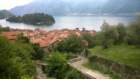 l'isola. In questo tratto, in cui la statale si fa sempre più stretta, il traffico impone spesso lunghe soste ai veicoli. A piedi tutto è più facile perché, attraversata la strada, il sentiero si distacca dal lago e sale verso il centro di Ossuccio. C'è il tempo per guardarsi intorno e per fermarsi in una delle trattorie o locande (quasi tutte, come le chiese, hanno nomi di Santi) che servono i tradizionali missoltini ed il pesce di lago. Dall'alto una torre medioevale controlla la strada; in lontananza, si riconosce la sagoma di qualche cappella del Sacro Monte e, dietro un costone roccioso, la guglia del Santuario del Soccorso. Più oltre, in direzione di Lenno, le forme chiare e sobrie dell'Abbazia dell'Acquafredda.